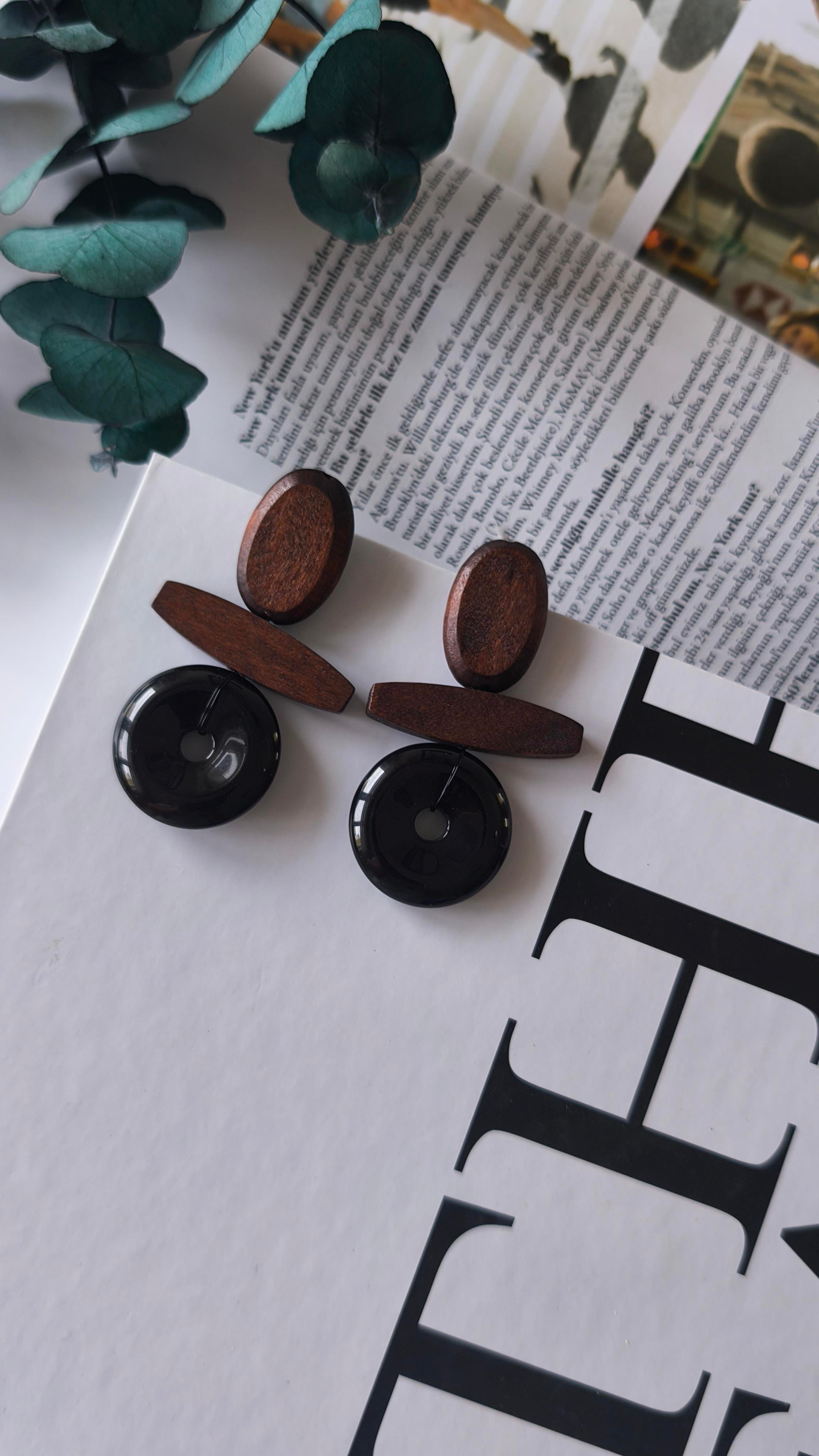 Ahşap Model Siyah Halka Sallantılı Küpe