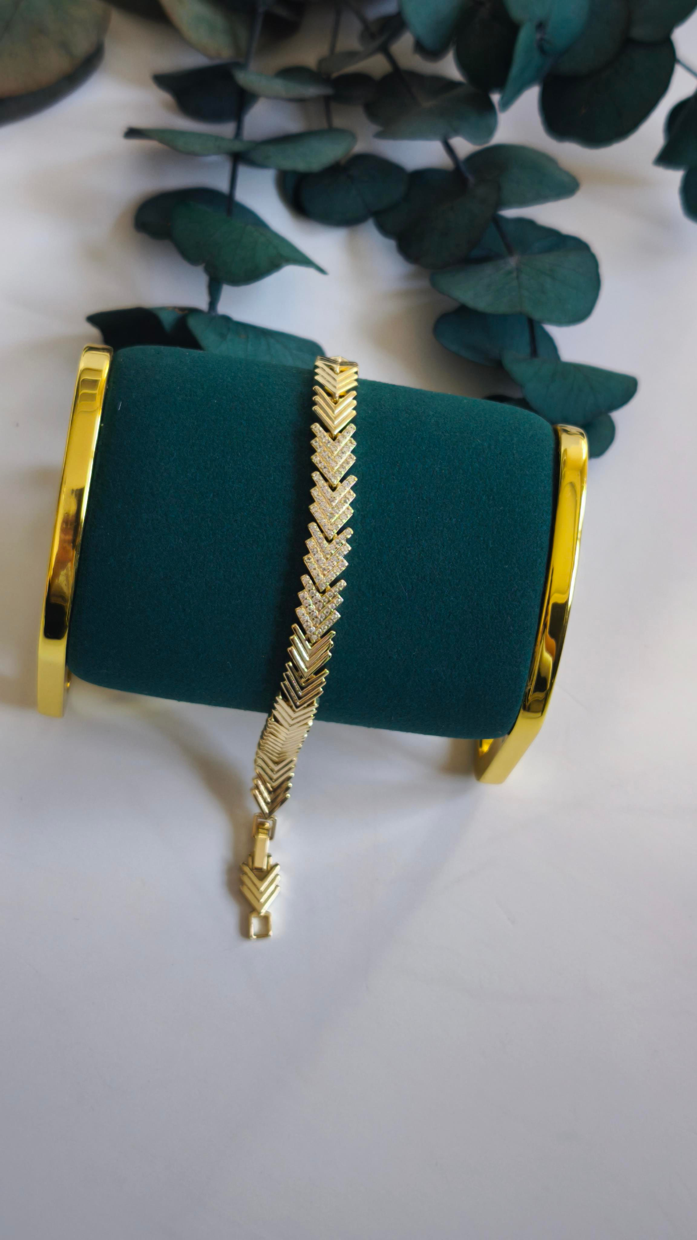 Altın Kaplama Zirkon Taşlı Üçgen Şerit Bileklik (VB03176)