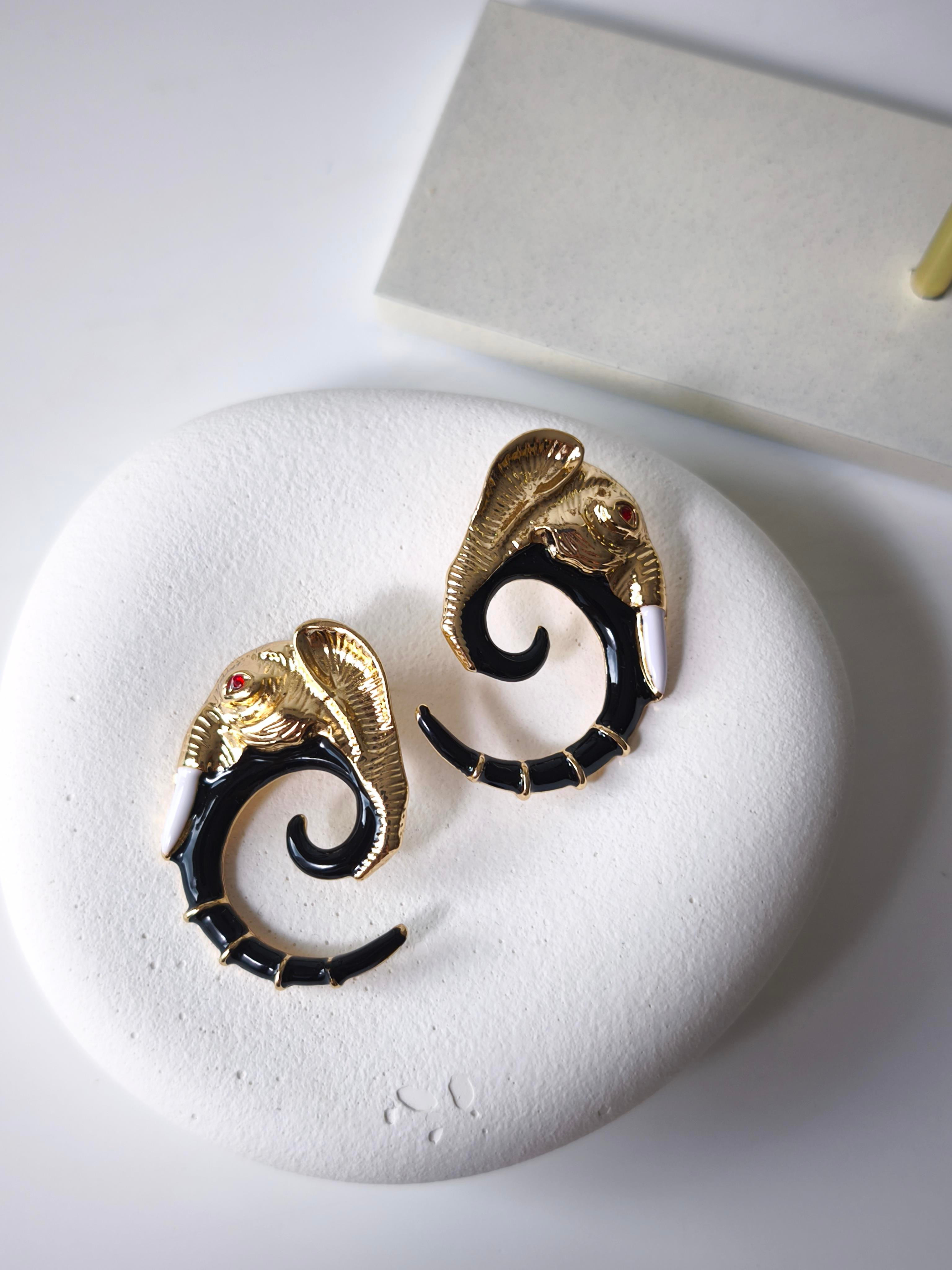 Gold ve Siyah Detaylı Marka Model Fil Figür Küpe