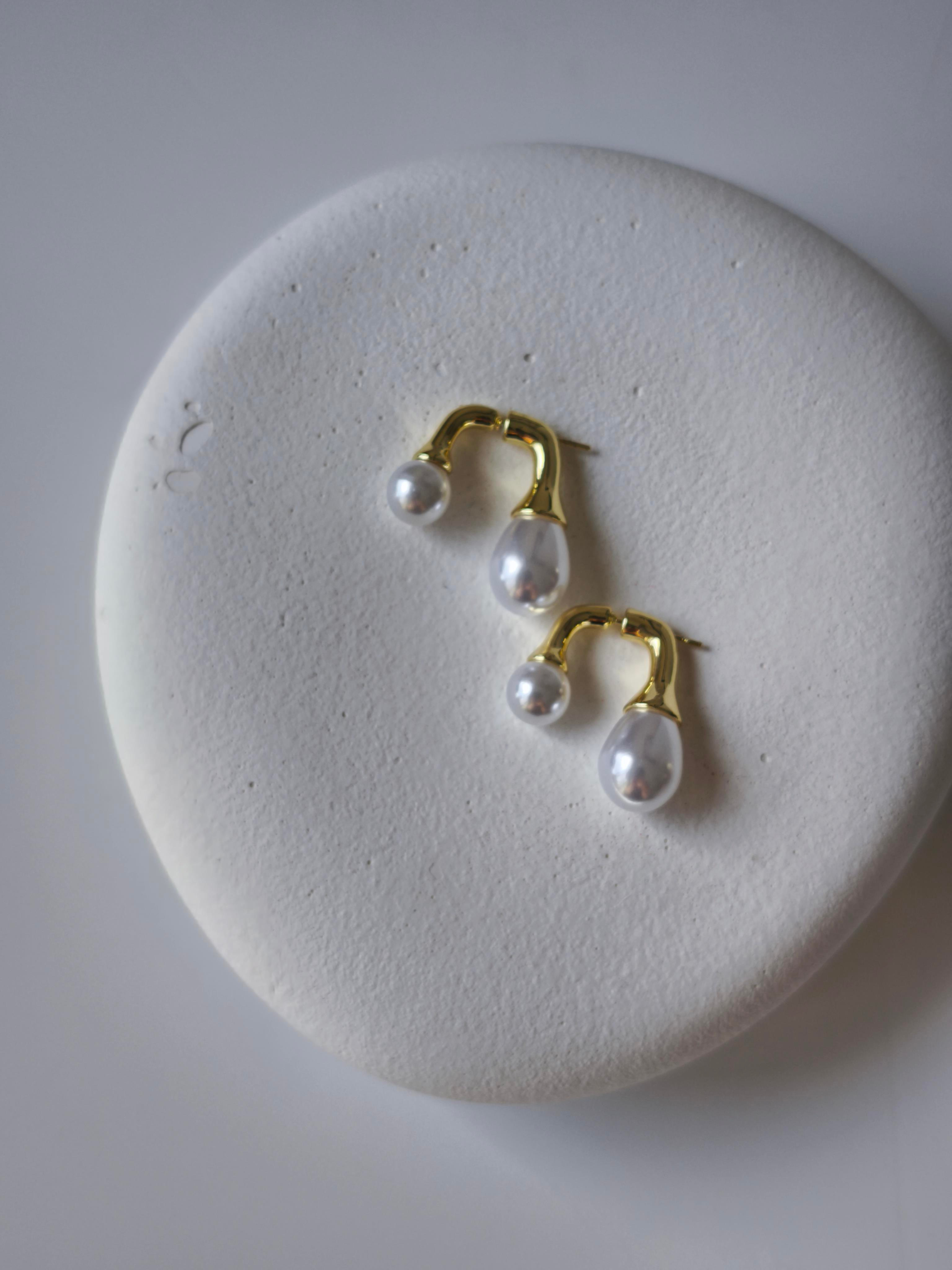 İki Ucu İncili C Model Gold Küpe (VB02373)