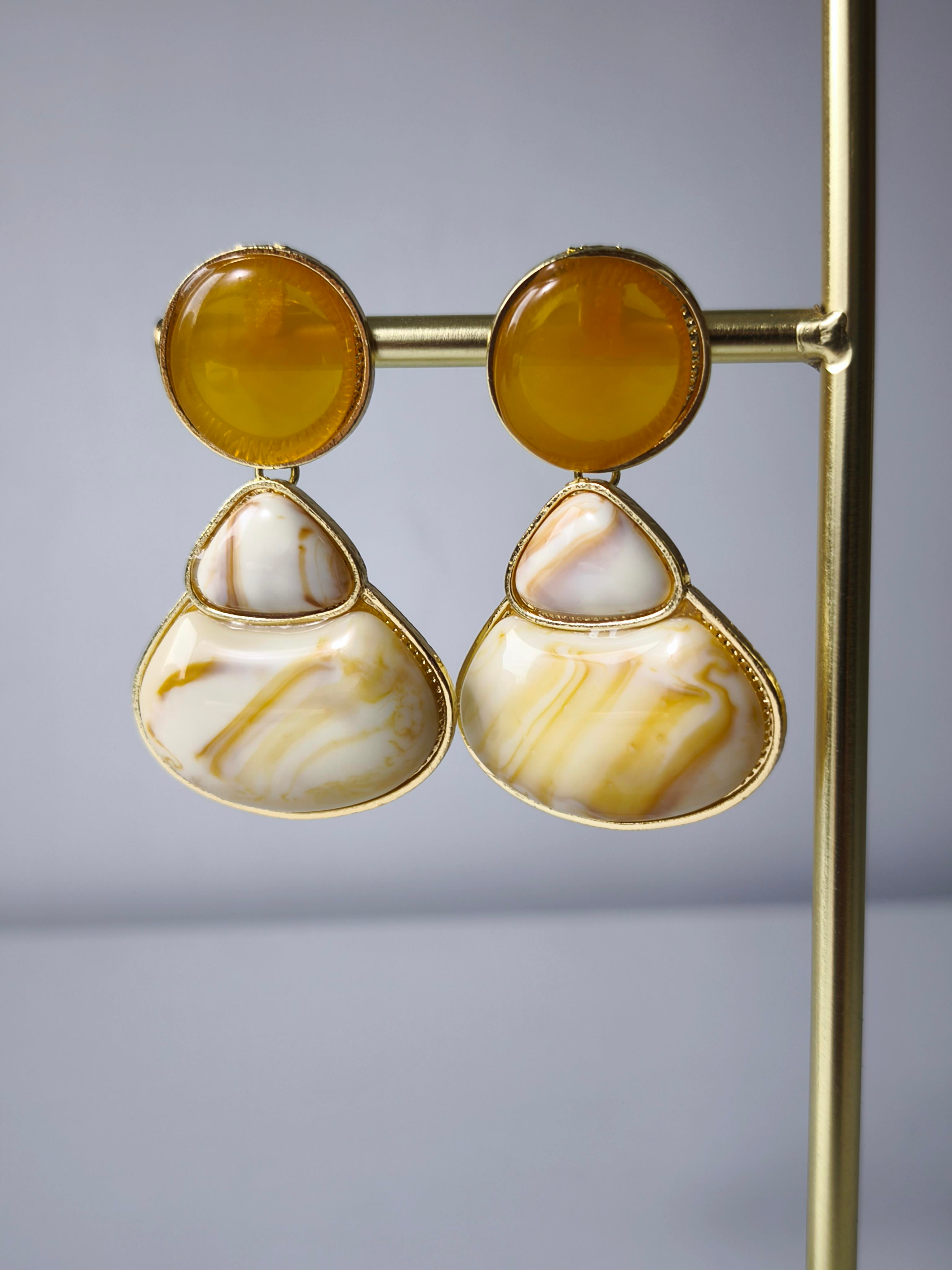 Mermer Görünüm Detay Sallantılı Marka Küpe
