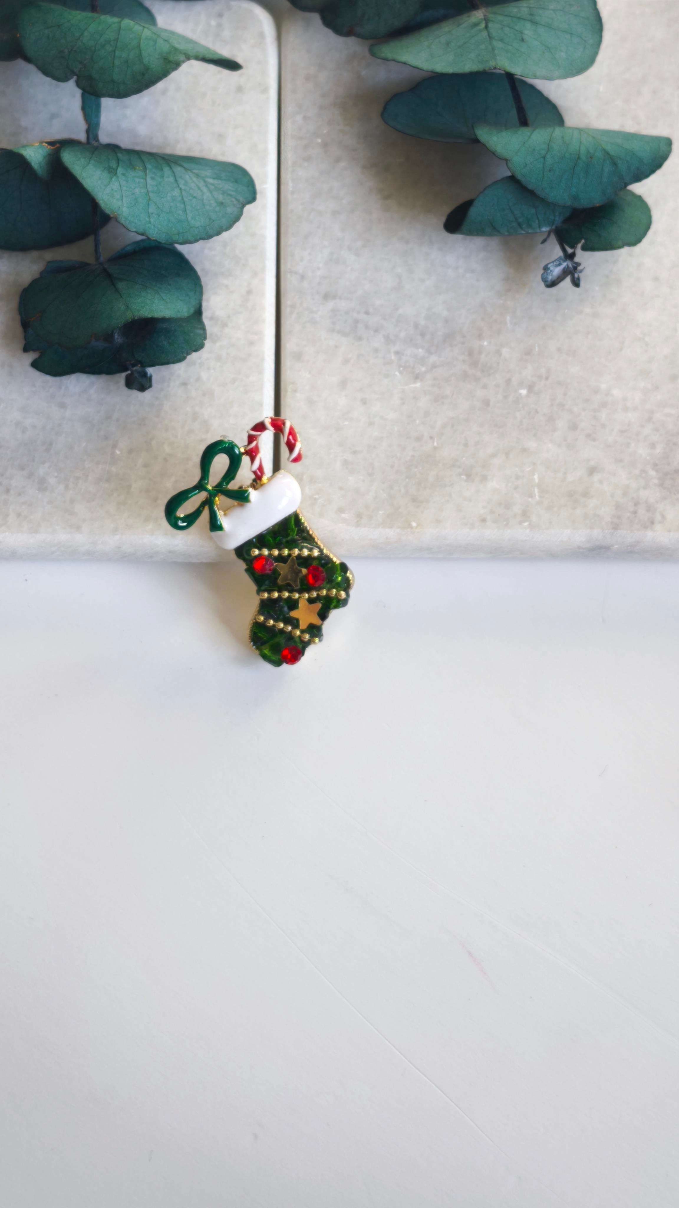 Yeşil Boncuk Yılbaşı Çorabı Broş