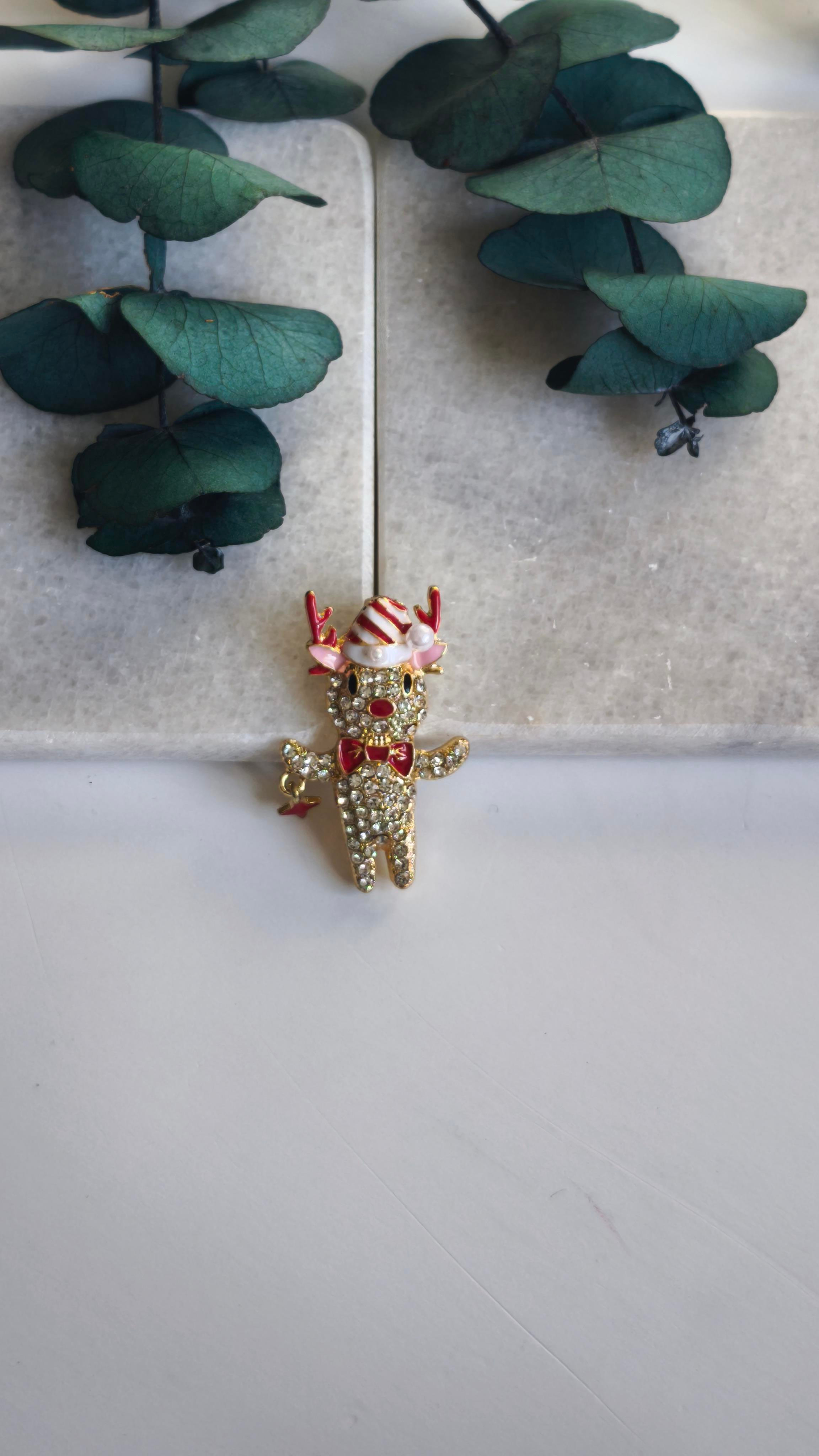 Yıldızlı Taşlı Yeni Yıl Geyik Broş (VB06059)